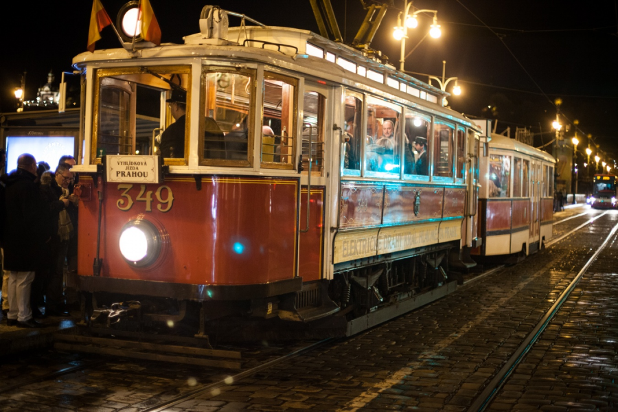 - Druhý večer měli hosté možnost, projet se historickou tramvají, která je dovezla až k RUDOLFINU, kde byla připravena gala večeře s hudbou.